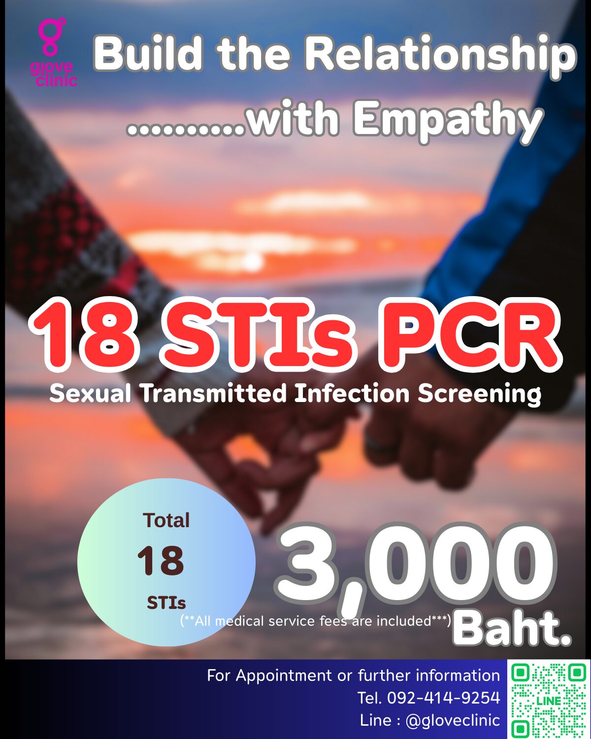 At Glove Clinic, we want everyone to have access to STI PCR testing at an affordable cost. That’s why we are offering a promotion for STI PCR testing, screening for 15 types of sexually transmitted infections, for only 2,500 Baht (excluding doctor’s fee and service) starting from September 1st, 2023.